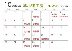 こんにちは!いつも体験工房和楽日内「革小物工房a.w.s」をご利用いただき誠にありがとうございます。